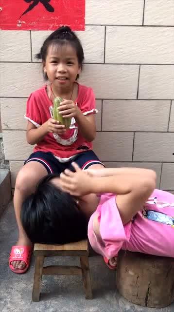 “哎,这瓜太大了,我都不知道该从哪里开始吃了!”